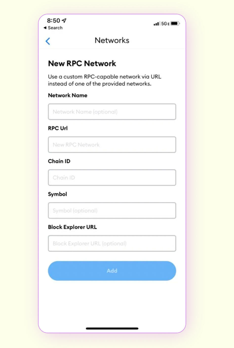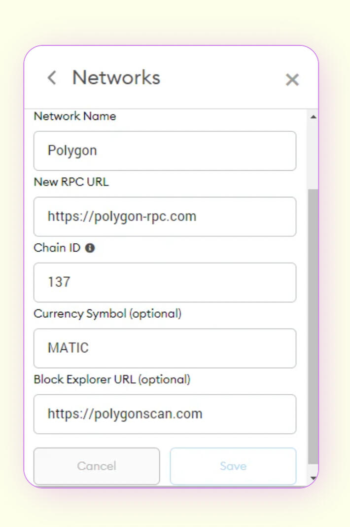 And then click on "Networks" and the "Add Network" button to pull up the following prompts