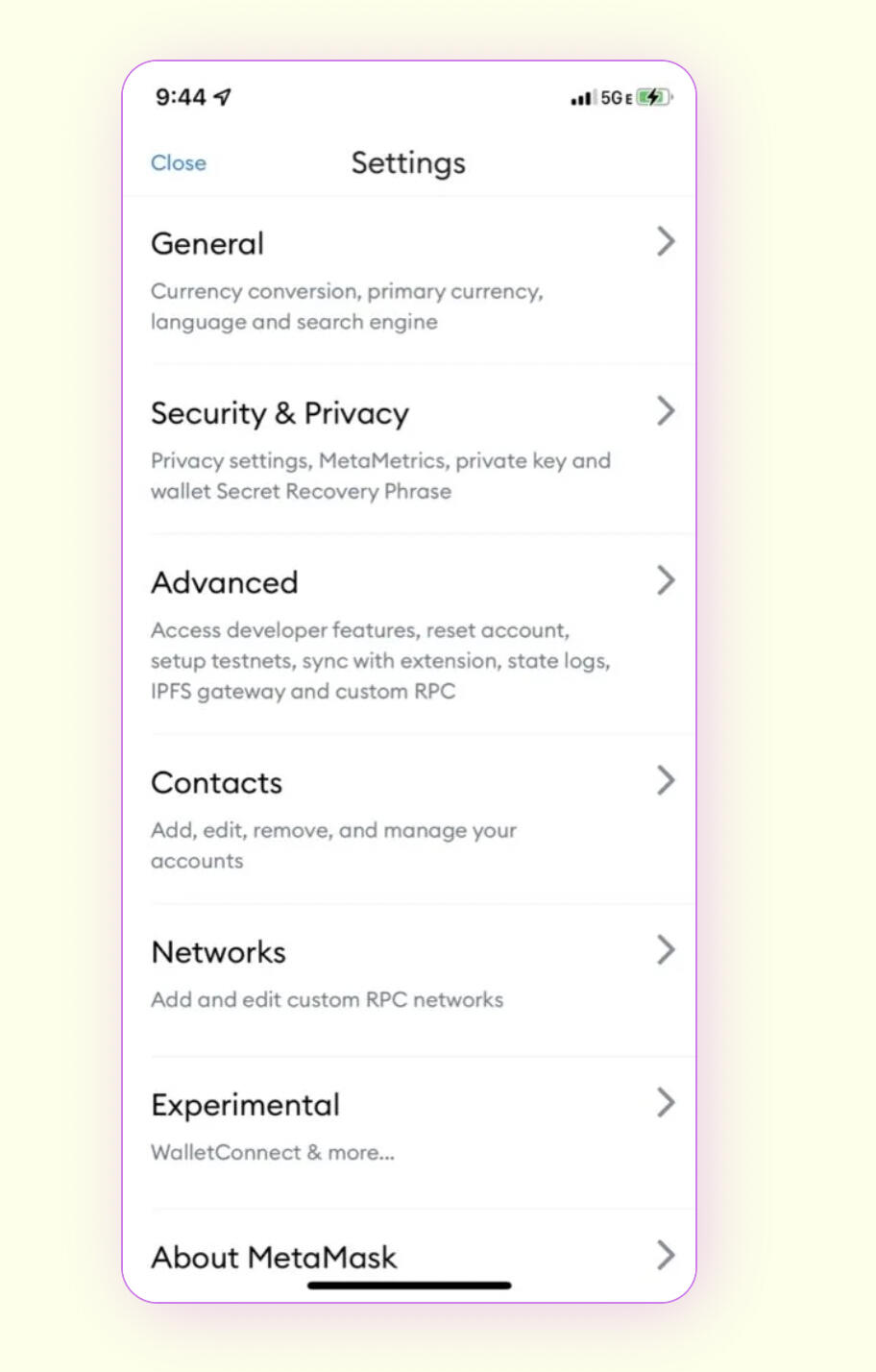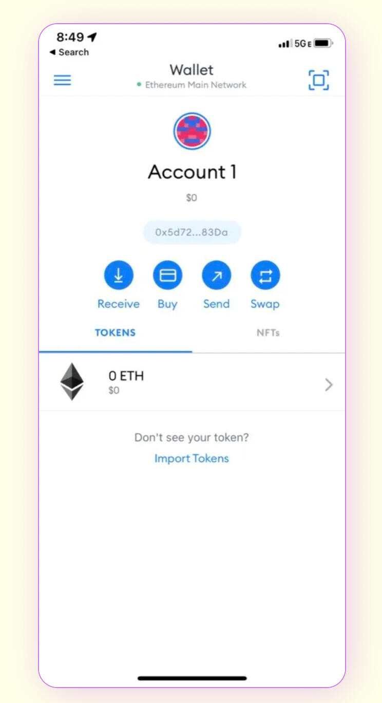 After installing and opening the MetaMask mobile application, you will be prompted to either "Create a new wallet", or "Import using Secret Recovery Phrase". If you have an existing desktop wallet that you would like to use, you can import it at this time. You will need the secret recovery code that you created for your desktop wallet.If you choose to create a new wallet, you will be prompted to set up a password and then a security phrase. This security phrase can be used to restore your wallet should you end up locked out, so keep it safe.After confirming your Security Phrase, you will be taken to your wallet: